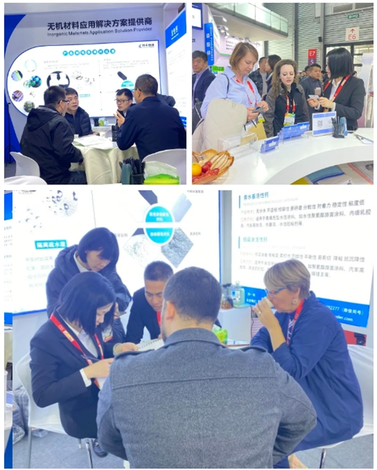 旭豐粉體本次展會(huì)依然充滿“新”意,以穩(wěn)重藍(lán)為主色調(diào),展位造型簡(jiǎn)約不失大氣,設(shè)有直觀的產(chǎn)品展示區(qū),并以專業(yè)的知識(shí)和服務(wù),吸引了行業(yè)大咖駐足參觀和互動(dòng)交流!