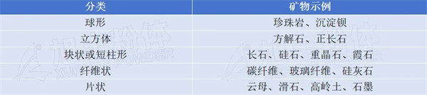 表2.非金屬礦物填料按幾何形狀分類(lèi)