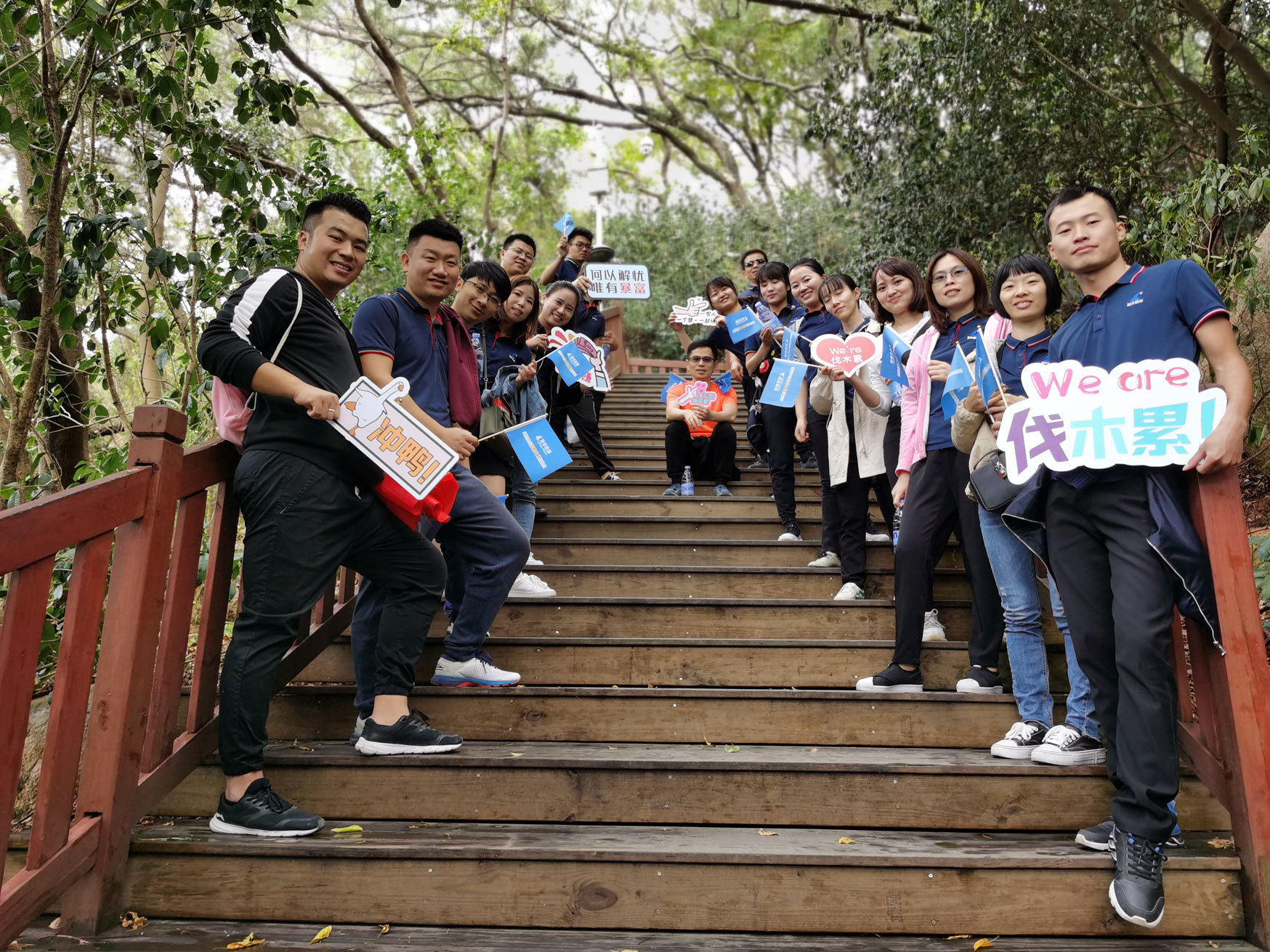 早上9點(diǎn),所有小伙伴在山腳下集合,帶著對(duì)這尊英雄雕塑油然而生的敬仰,我們迎著朝陽(yáng)出發(fā)了。踩著石梯在茂密的叢林中穿山而上,一路走走停停,談笑風(fēng)生,顧不得腰酸腿軟,汗流滿(mǎn)面,興致勃勃爬到了山頂。